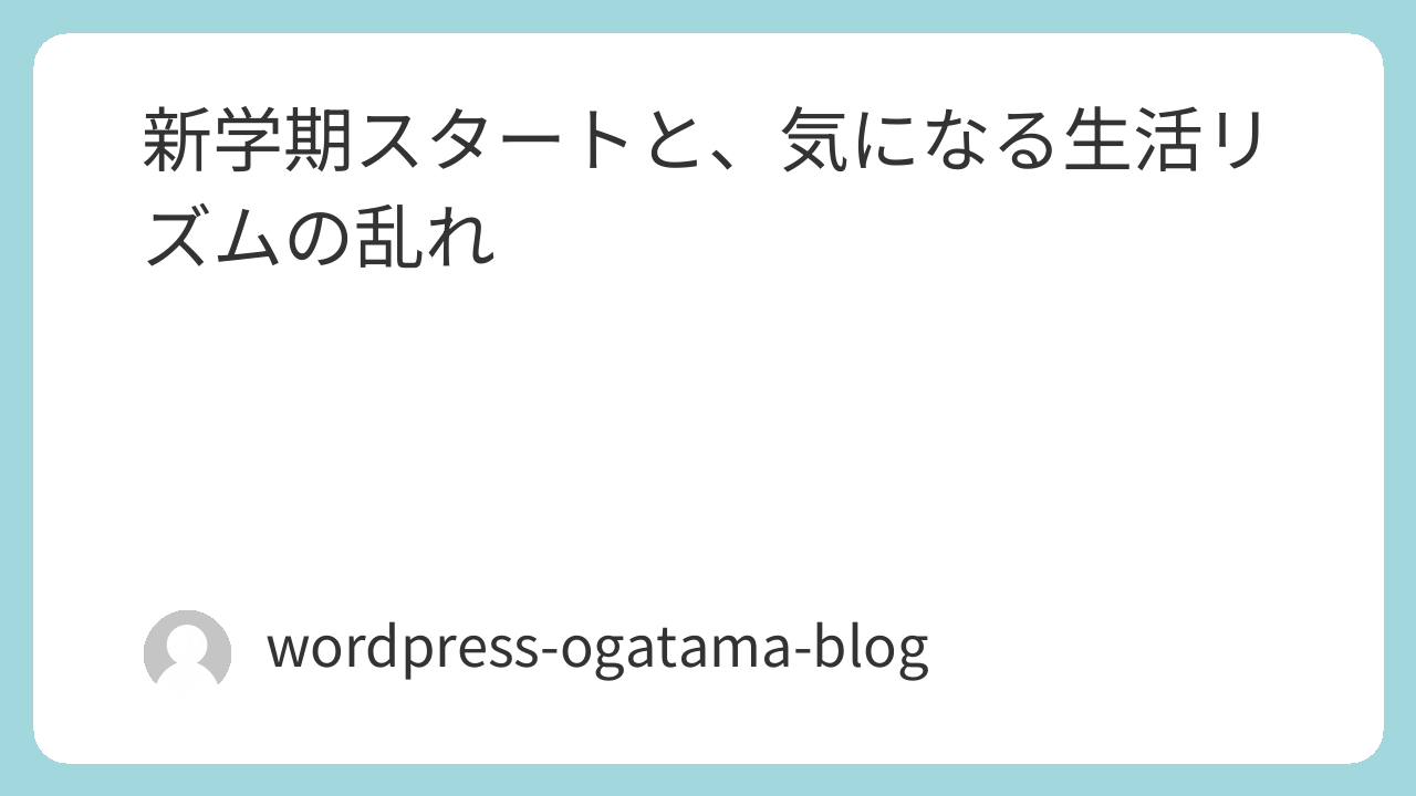 新学期スタートと、気になる生活リズムの乱れ